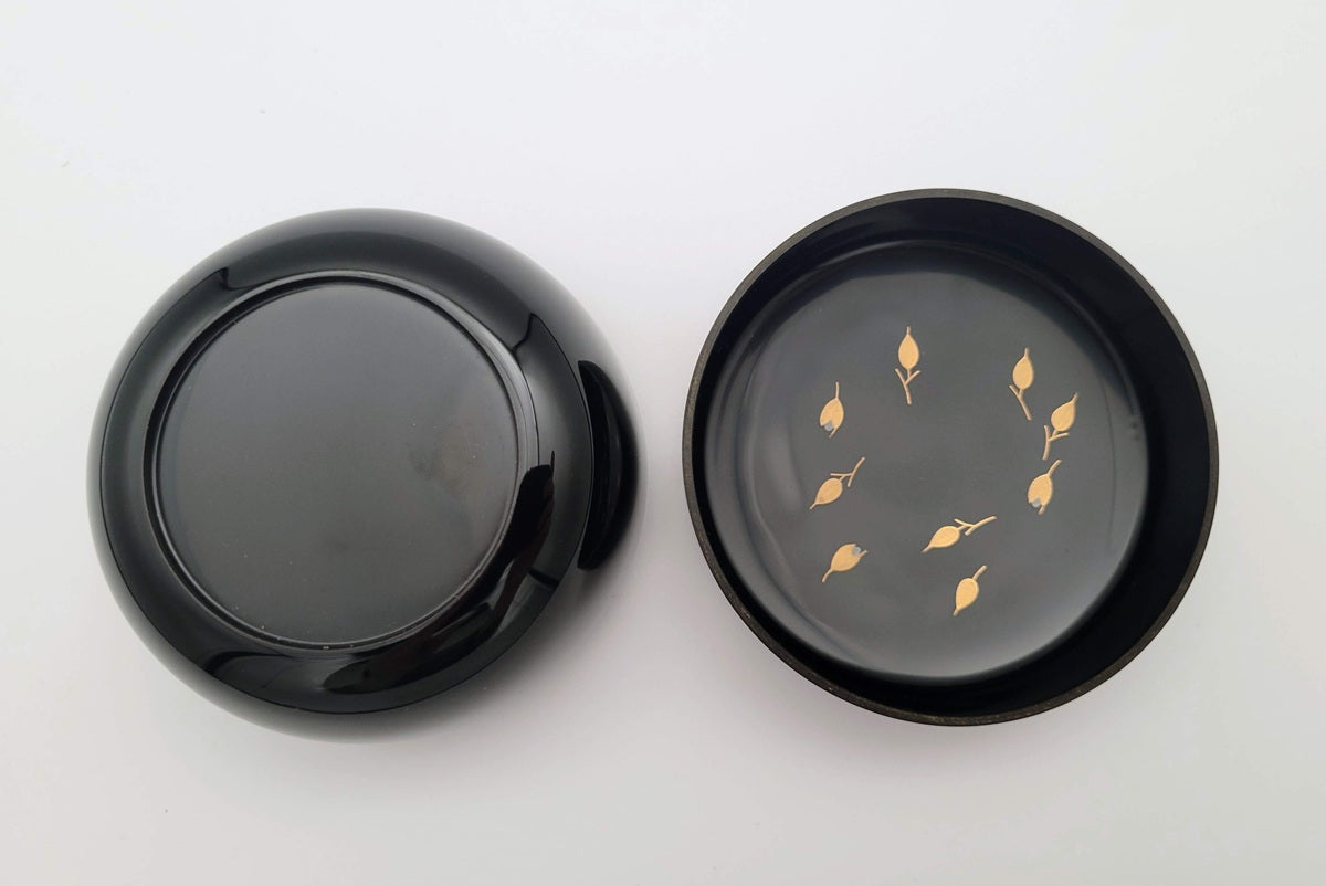 The natsume demonstrates the highest level of craftsmanship: the lacquer is even and glossy, the maki-e is fine and precise, and the finish is meticulously crafted. The piece comes with its original wooden tomobako (storage and presentation box) and accompanying tray.